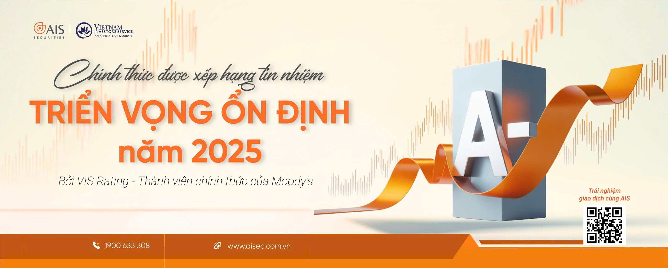 Công ty Cổ phần Chứng khoán AIS (AIS) vừa chính thức được Công ty Cổ phần Xếp hạng Tín nhiệm Đầu tư Việt Nam (VIS Rating) đánh giá mức xếp hạng tín nhiệm tổ chức phát hành dài hạn ở mức A-, với triển vọng ổn định.