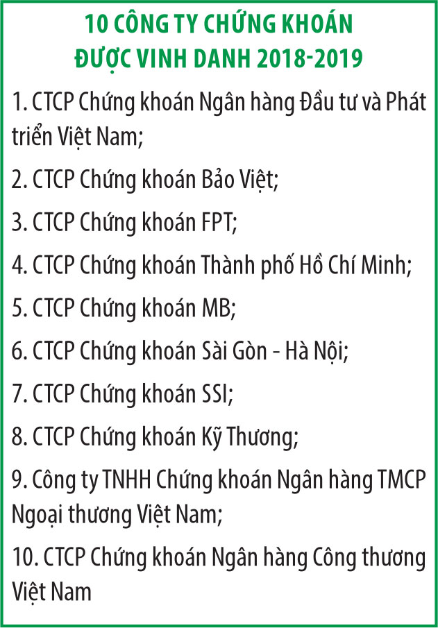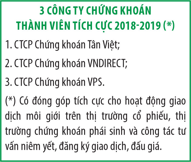 Tại Hội nghị thành viên thường niên năm 2019, HNX đã chọn 10 CTCK tiêu biểu để vinh danh vì các công ty này có nỗ lực và đóng góp nhiều nhất cho thị trường trong giai đoạn 2018 - 2019. HNX tổ chức đánh giá, chấm điểm các CTCK thành viên và chọn ra danh sách này (xem bảng).