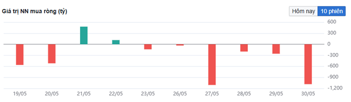 Khối ngoại đẩy mạnh bán ròng trong phiên giao dịch cuối tháng 5.