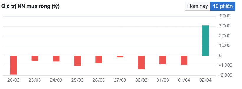 Khối ngoại quay đầu mua ròng mạnh với quy mô 3081,98 tỷ đồng sau 15 phiên bán ròng liên tiếp.