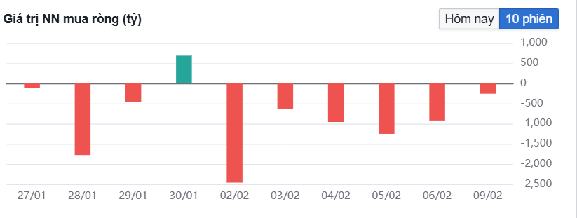 Khối ngoại bán ròng phiên thứ 6 liên tiếp.