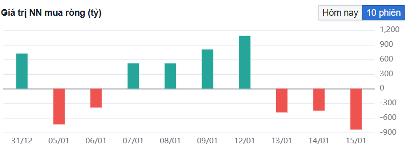 Phiên ngày 15/01, VNINDEX giảm 29,64 điểm, đóng cửa tại 1864,80 điểm. GTGD giảm 13,4% đạt hơn 40,9 nghìn tỷ đồng.