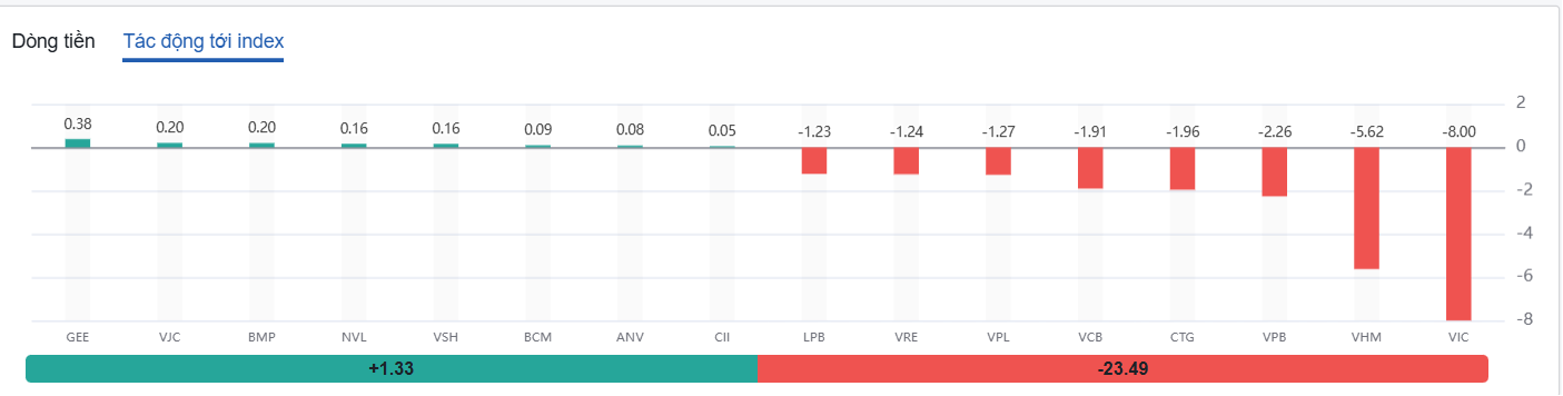 Bộ ba cổ phiếu nhà Vin là nguyên nhân chính đè nặng lên chỉ số.