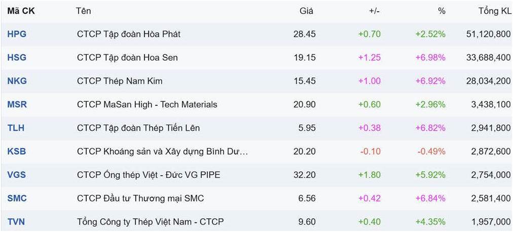Nhóm cổ phiếu Thép liên tục bật tăng sau những tin tức liên quan đến áp thuế chống bán phá giá.
