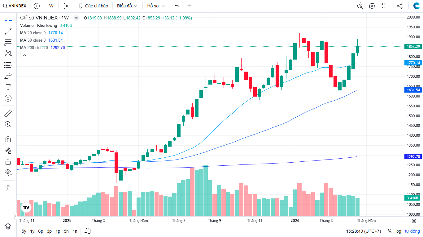 VNINDEX HƯỚNG TỚI MỤC TIÊU 1900 ĐIỂM.