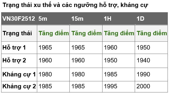 Tại khung 1H và 1D VN30F2512 duy trì trạng thái tăng điểm.